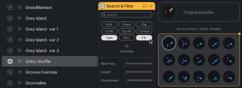 Let XO suggest new kits based on similar sounds in your library. Stumble upon unexpected and awesome combinations - the perfect kit might be just a click away.