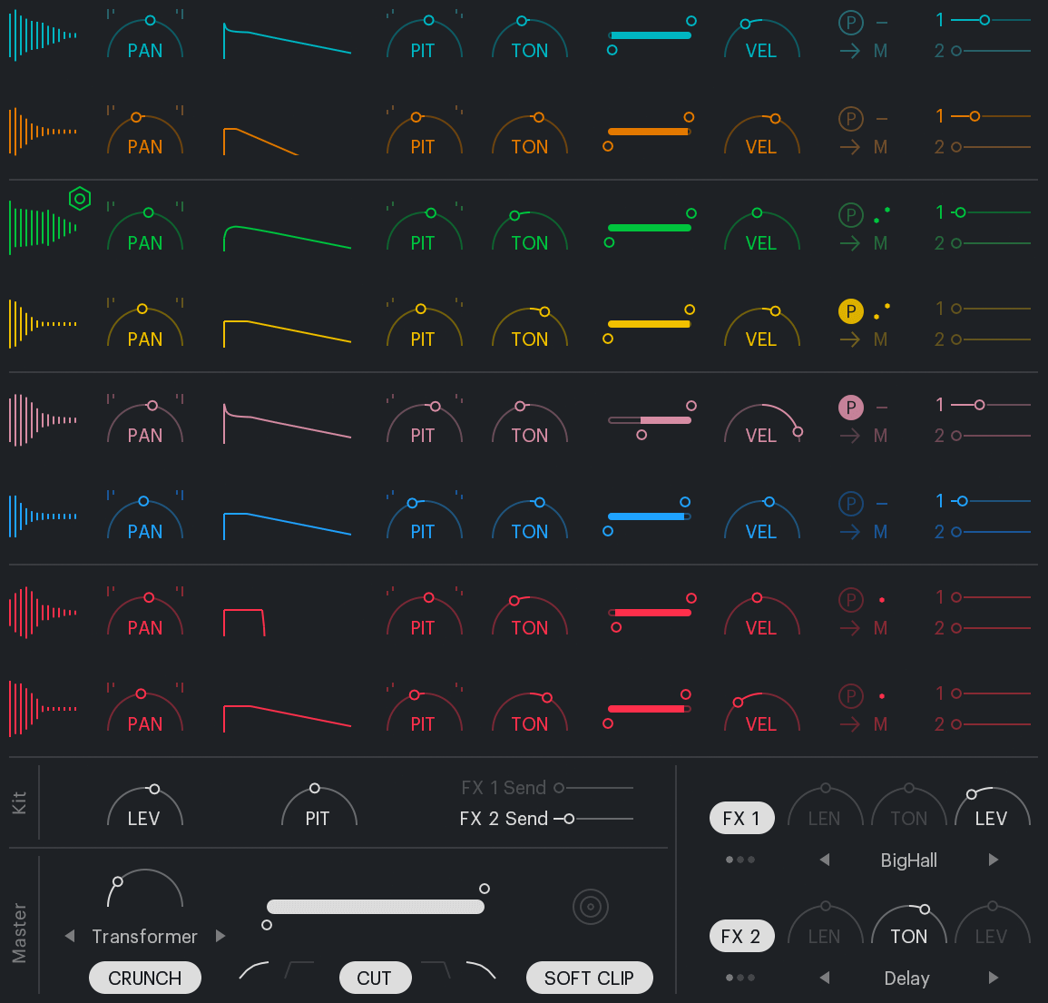 Tap into an endless source of happy accidents by swapping or randomizing patterns and sounds - one by one, or all at once.